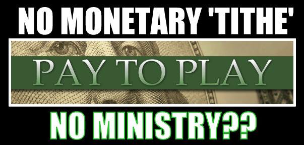 The requirement to tithe money in order to serve is unheard of in the Old and New Testament. It undermines the priesthood of all believers, quenches the Holy Spirit, shows partiality (favoritism) to certain believers, and brings sorrow to those who are stirred up to do good works and want to serve.